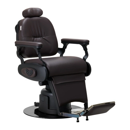 Elektryczny system sterowania gwarantuje szerokie możliwości regulacji. Umożliwia precyzyjne dostosowanie wysokości siedziska w zakresie 58-72 cm oraz niemal pełen obrót, co zapewnia barberom znaczną swobodę ruchu, nawet w mniejszych przestrzeniach. Sterowanie odbywa się zarówno za pomocą przycisków umieszczonych z boku fotela, jak i za pomocą sterowania nożnego, co daje dodatkową elastyczność podczas pracy. Podnoszenie oparcia i podnóżka jest również sterowane elektrycznie, co pozwala na szybkie i płynne dostosowanie pozycji klienta do wykonywanego zabiegu.
