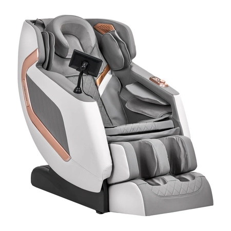 Wygodne wnętrze fotela pokryte jest przyjemną w dotyku imitacją skóry w odcieniach szarości. Zastosowanie takiego materiału sprawia, że jest wysoce odporny na wilgoć oraz łatwy w czyszczeniu. Zastosowane na zewnętrznych częściach fotela materiały w odcieniach bieli i szarości oraz ozdobny element w odcieniu rose gold, nadają produktowi charakterystyczny, elegancki wygląd, który wyróżnia go spośród innych. Starannie wykonane obszycia nadają mu stylowy wygląd, a solidna konstrukcja gwarantuje długie użytkowanie. Kompaktowy model o estetycznym wykończeniu i klasycznej kolorystyce doskonale wpasuje się w każde wnętrze. Fotel masujący Sakura Classic 802A to idealny sposób na relaks w dowolnej chwili, zwłaszcza po wyczerpującym dniu lub ciężkim treningu.