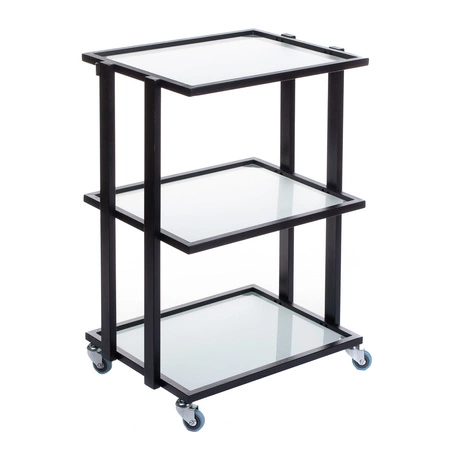 aluminiowej konstrukcji. Szerokie półki oraz mobilność zapewniają